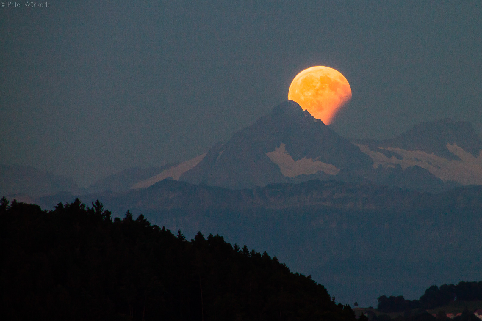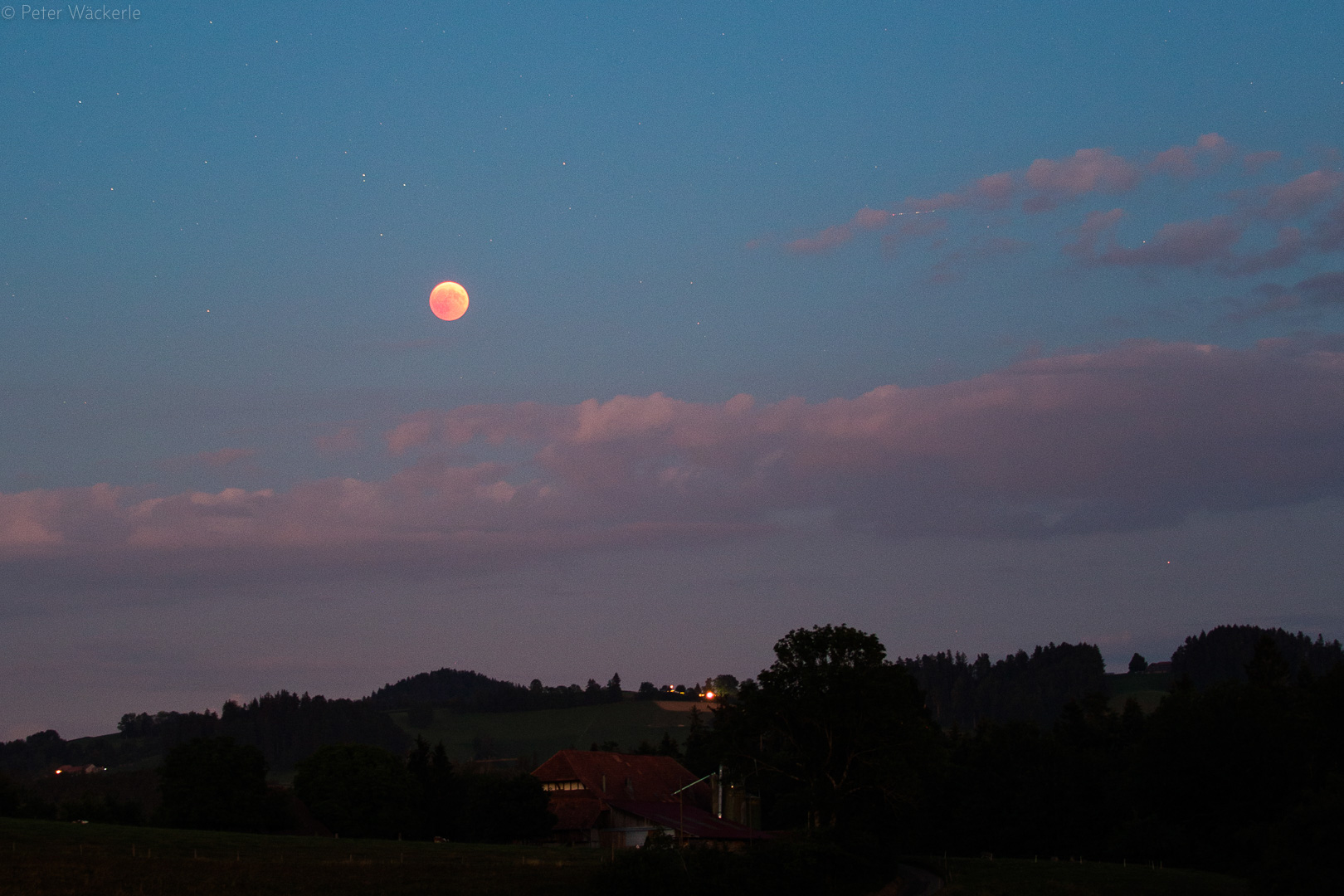 MoFi 27.7.2018 Partielle Mondfinsternis bei Mondaufgang, 5 Minuten vor Totalität