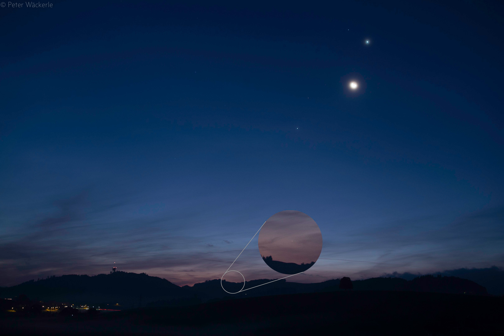 Mond mit Venus, Mars, Jupiter und Merkur